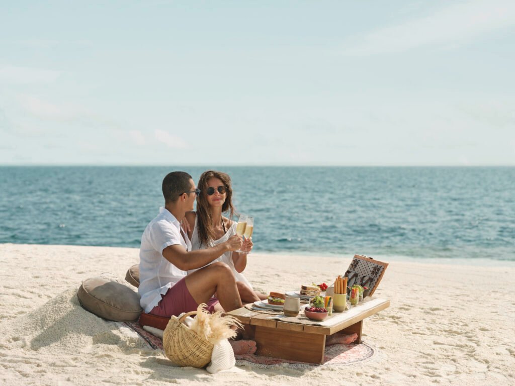 Couples can enjoy sunset cruises, private sandbank dinners, couples’ spa rituals, and bespoke diving/snorkeling experiences in the surrounding reefs.