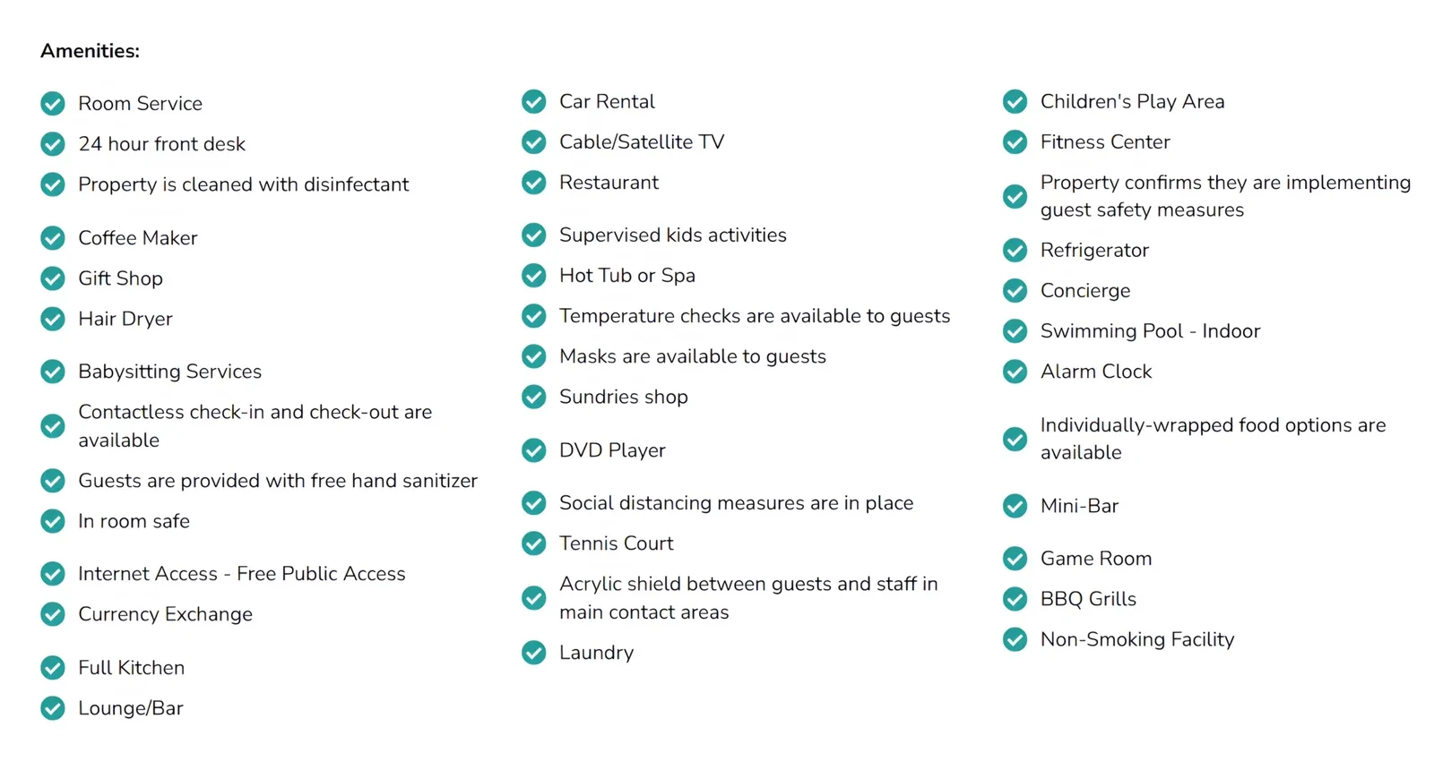 Room amenities, details, and policies